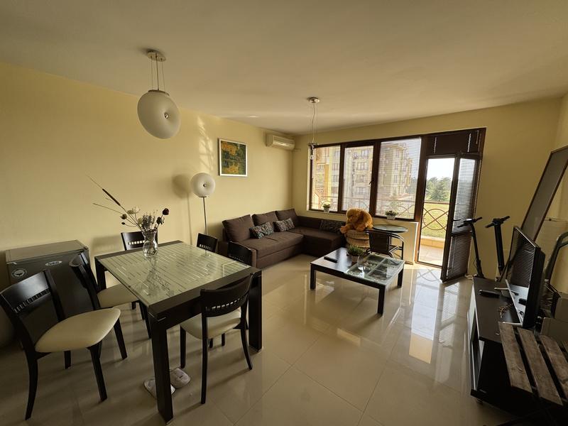 Просторная и полностью меблированная трехкомнатная квартира в комплексе Sunny Fort, расположенном на курорте Солнечный берег — в месте, которое сочетает удобство близости ко всем развлечениям с более спокойной и приятной атмосферой для отдыха и проживания.