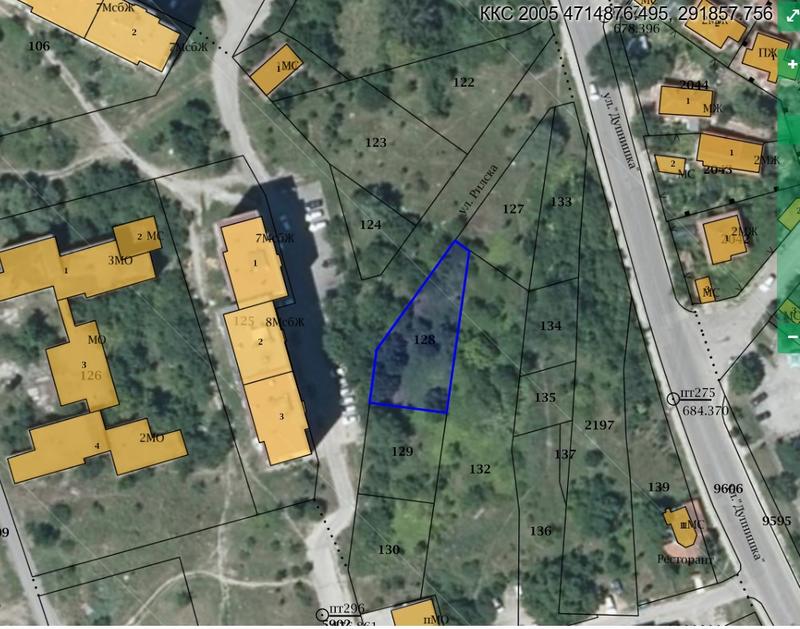 Земельный участок в урбанизированной зоне в городе Разлог г. Разлог Участок под общественное сооружение или комплекс Предлагаем Вашему вниманию участок под застройку площадью 5745 кв.м. в городе Разлог. Участок достаточно большой, есть возможность строить от жилых домов до производственных баз. Характеристики: • Ток: 20 м / к фотогальваническим панелям • Вода: 20 м • Канализация: канал
