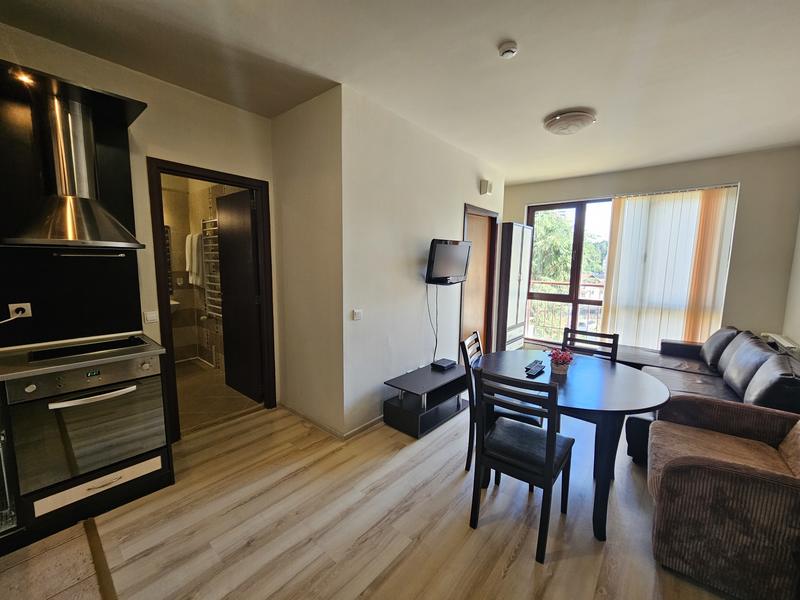 Стильно меблирован двустаен апартамент в комплекс Flora – Боровец к.к. Боровец Модерно жилище с прекрасна гледка до ски лифта в центъра на Боровец Комфортабельная двухкомнатная квартира общей площадью 54,15 кв. м (чистая площадь - 46,95 кв. м + 7,20 кв. м мест общего пользования), расположенная на 3-м этаже в современном закрытом комплексе