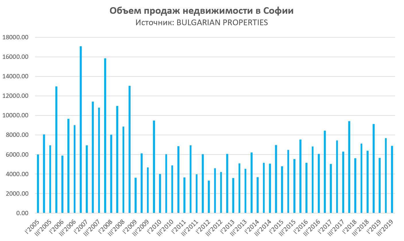 По данным Агентства по вписываниям, в третьем квартале 2019 года в Софии было зарегистрировано 6 874 сделок с недвижимостью по сравнению с 6 376 за тот же период в 2018 году, что составляет примерно 8% роста.