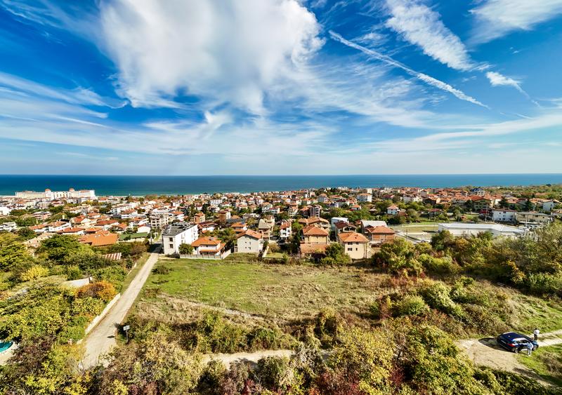 Предлагаем Вам очень удобный участок в куортном городке Обзор на главной дороге Е-87, соединяющей города Варна и Бургас.