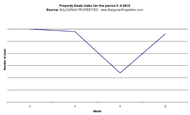 In the second quarter of 2010 the Bulgarian property market gave very diverse signals. After 6 months of a similar number of deals the month of March witnessed an increase in the deals and there was optimism that this is the beginning of the end of the crisis. The increase in the number of deals continued all through April as BULGARIAN PROPERTIES registered record sales since the beginning of the crisis. However, after that about 10% of the buyers who had signed preliminary agreements for purchasing a property decided to back out of the deal due to lack of finances and an increased insecurity about their financial situation.