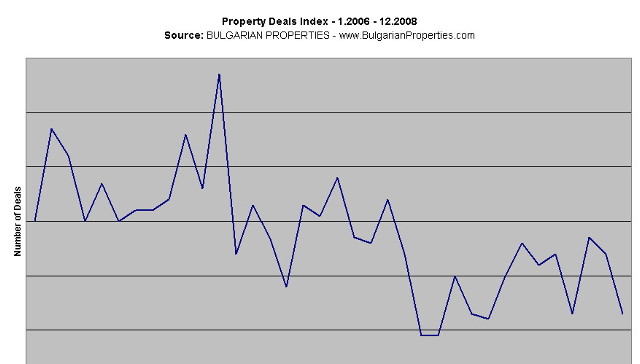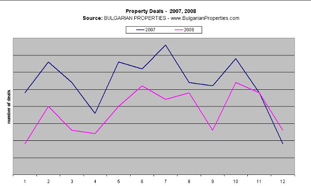 The analysis is based on empirical data from real completed property deals of BULGARIAN PROPERTIES in 2008 compared to the ones in 2007. The National Statistics Institute's figures support our market overview.
