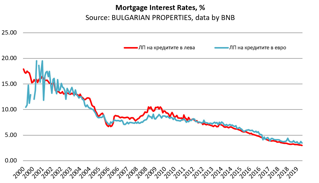By this indicator too the real estate is currently the most affordable for the entire history of mortgage loans in Bulgaria, as interest rates on loans are currently at their lowest historical average of about 3% for the third quarter of 2019 and the expectation is that these levels will remain the same next year.