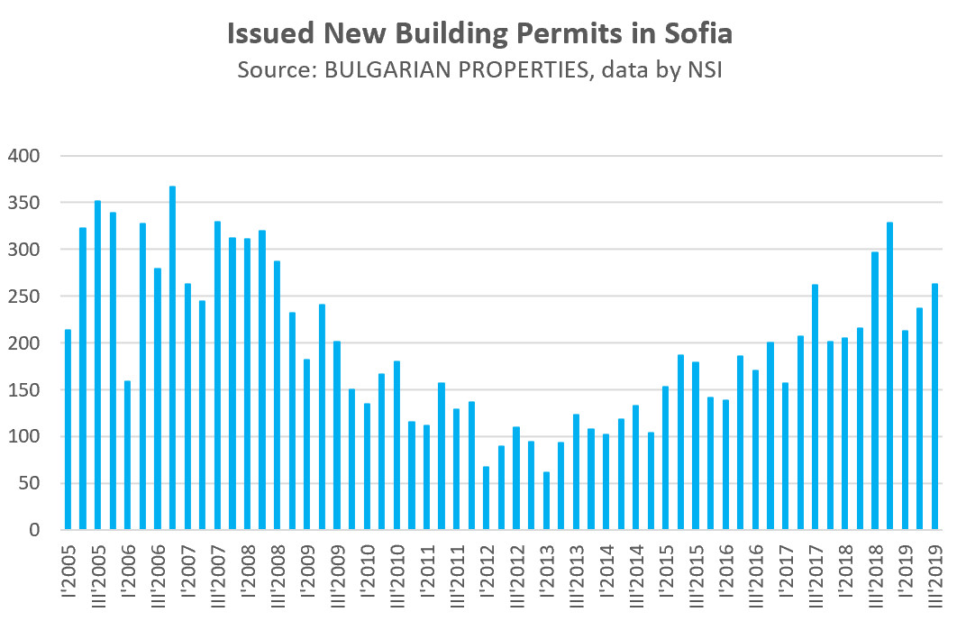 The new issued permits for residential buildings in Sofia in 2019 for the first 9 months remain at the same levels as in 2018, the difference being that in 2019 the buildings have about 10% more dwellings and come with larger built-up area by about 8.5%.