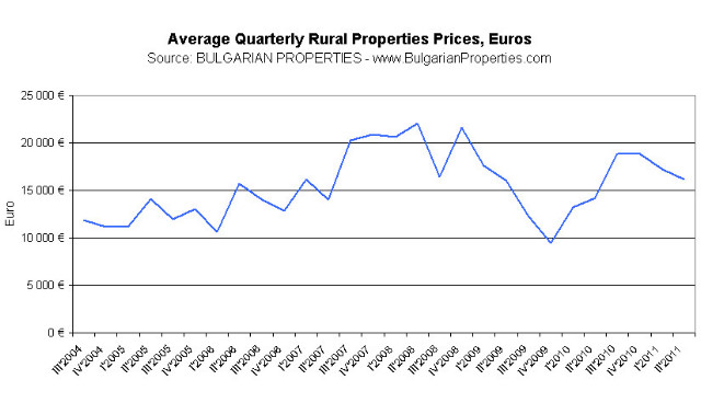 The number of sales of rural properties is the same as in 1Q 2011 and in 2Q 2010. There aren’t great fluctuations in prices either – the average price of sold rural houses in 2Q 2011 is 16,200 Euro, while in 1Q 2011 it was 17,200 Euro, which means a decrease of about 6%.