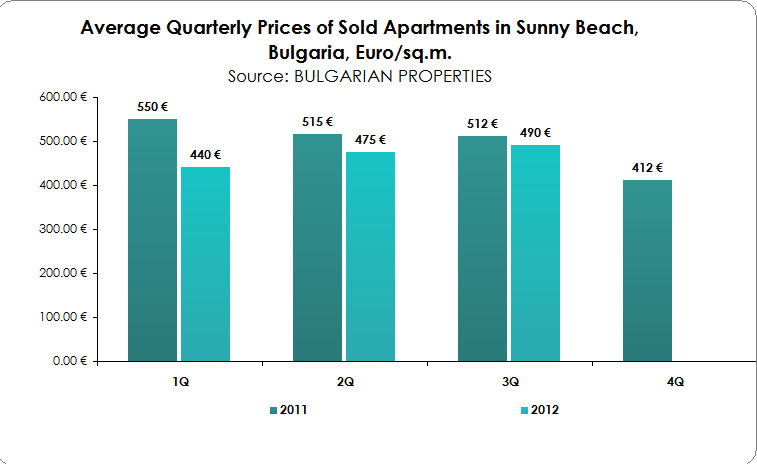 We can call 2012 - “The year of the Bulgarian beach properties”. 'This segment of the market has started to recover driven by interest from Russian buyers to purchase their own holiday apartment in a warm and sunny place like Bulgaria. The number of apartments sold in the third quarter increased by about 30% year-on-year, while the interest was focused mainly along the Southern Black Sea coast, not only in Sunny Beach but also in Pomorie, and also in Ahtopol, Sozopol, Lozenets and other resorts.