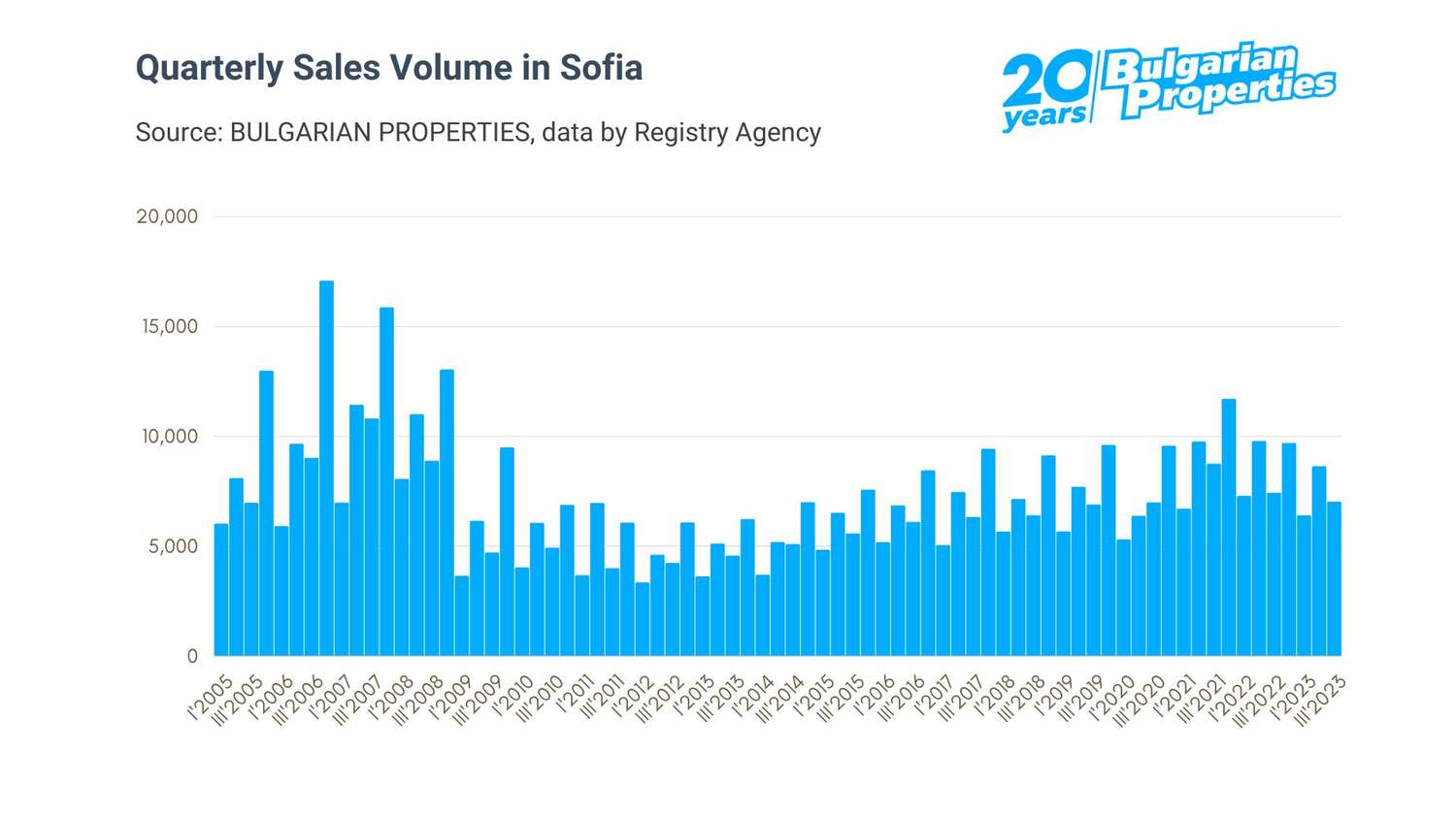 BULGARIAN PROPERTIES' calculations based on the data of the Registry Agency show that property transactions in Sofia marked a 5% decline in Q3. This is the fifth consecutive quarter in which the Registry Agency reports a decline in transaction volumes in the capital.
