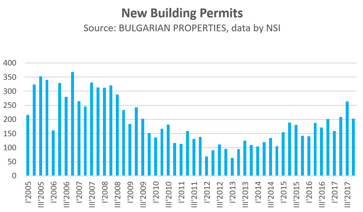 New building permits issued in Sofia according to NSI data are 201 for the 4th quarter of 2017. Thus, 2017 ended with 827 issued permits for new residential buildings in the capital compared to 695 in 2016, a growth of 19%.