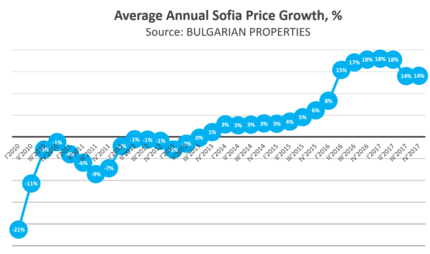 All this will affect demand in 2018 and we expect this year to be very similar to 2017. The rate of increase in prices will calm down to about 10%, but the overall dynamics will remain and this year the property market in Sofia will be again among the most attractive markets for investment.