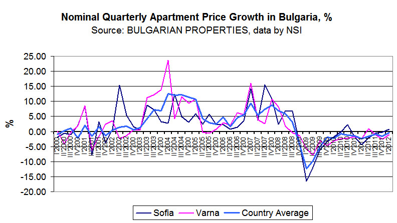 The average nominal decrease of prices in the country on a quarterly basis is 0.4% and this is the smallest drop in home prices in Bulgaria since the beginning of the crisis.