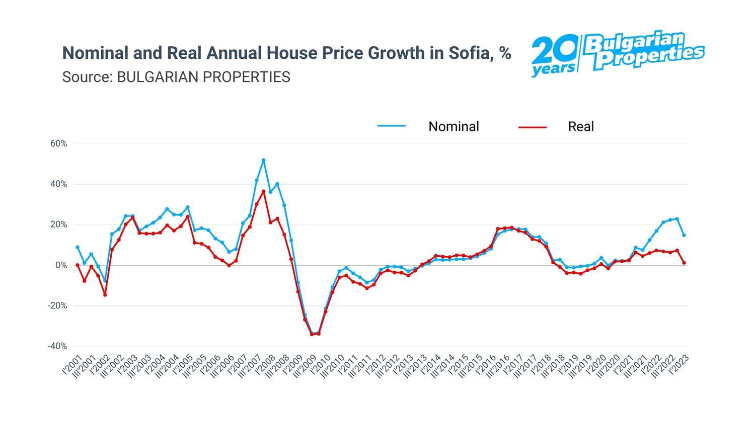 Based on these figures, one could conclude that prices in Sofia have reached their peak and are moving largely due to inflation. Its slowdown contributes to the expected deceleration in housing price growth.