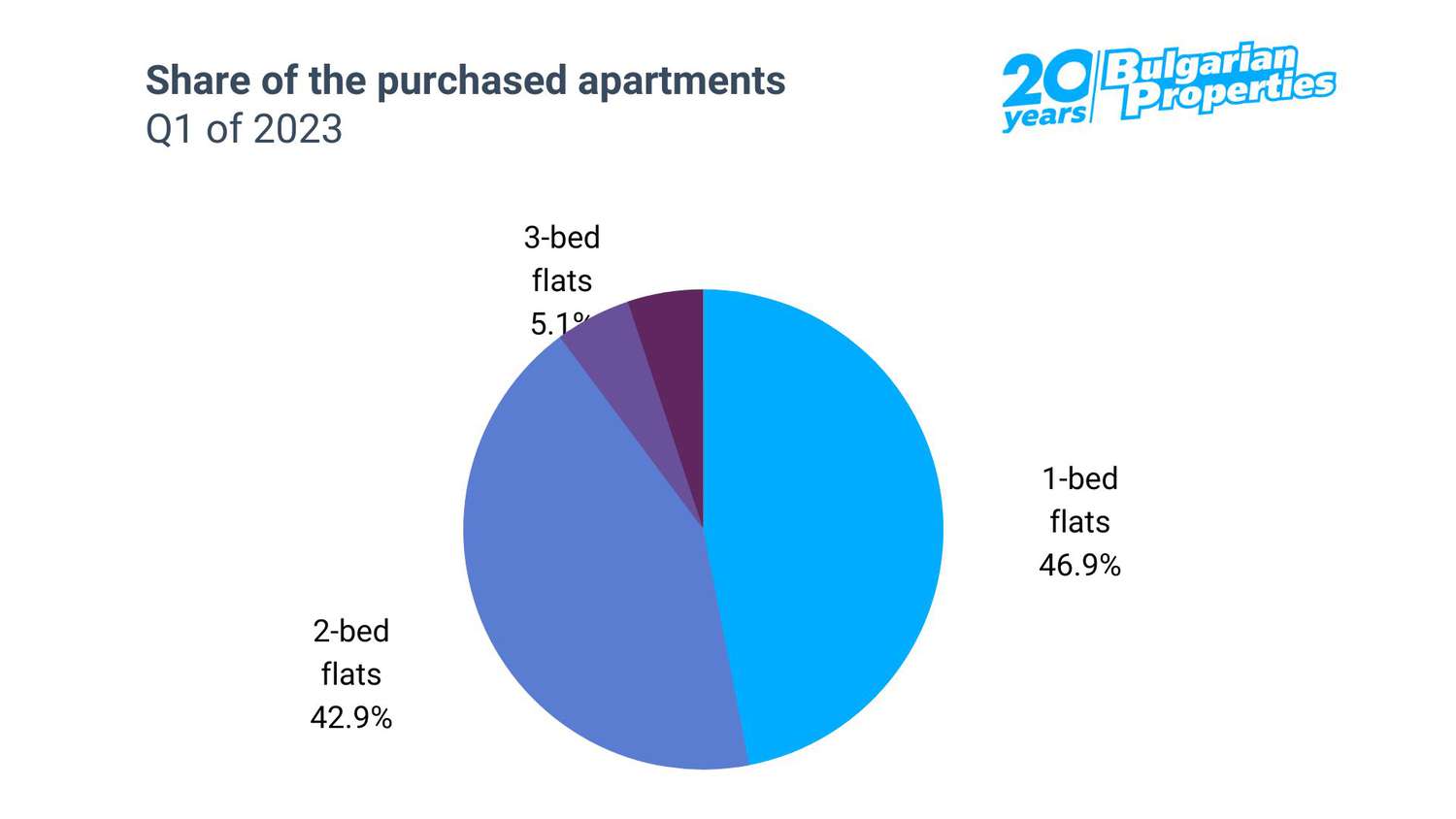 The average overall price of purchased apartments during the first quarter increased to Ђ132,800 from an average of Ђ115,500 in 2022. This indicates that market demand has shifted towards larger apartments from the more prefered 1-bed apartment purchases last year.