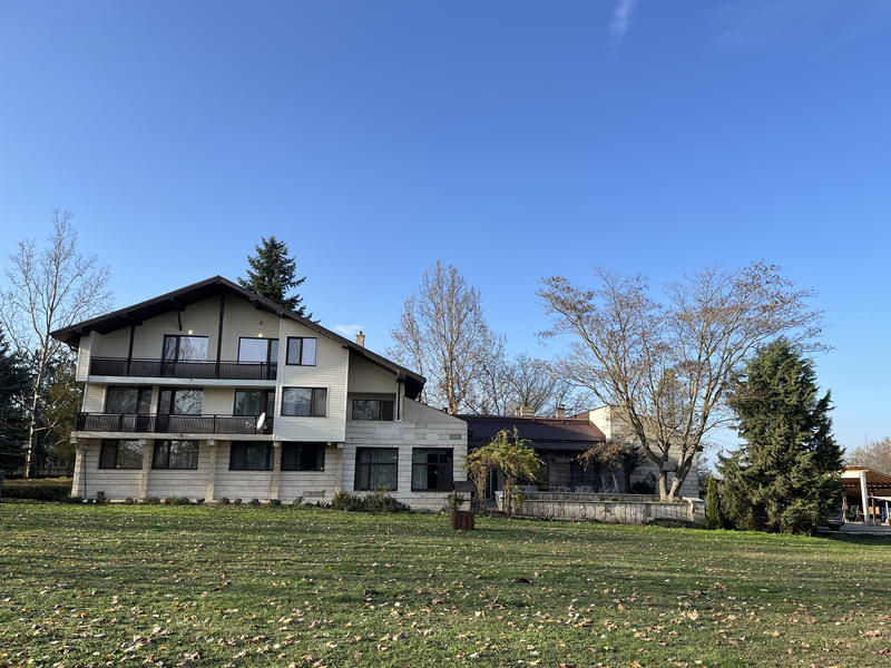 Исключительный объект недвижимости с редким масштабом и потенциалом — вилла с общей застроенной площадью 821 кв. м, расположенная в полностью обособленном, отлично ухоженном частном парке площадью 12,8 декара (12 800 кв. м), в спокойной и зелёной среде села Крушари, область