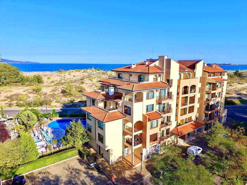 Двухкомнатная квартира в комплексе Golden Beach к.к. Солнечный берег Прекрасная квартира на первой линии от песчаных дюн на Солнечном Берегу Просторная и светлая двухкомнатная квартира в престижном, круглогодично работающем комплексе Golden Beach, с уникальным расположением на первой линии, рядом с природными дюнами, в 200 м от пляжа Солнечного Берега и в непосредственной близости от центра курорта с его