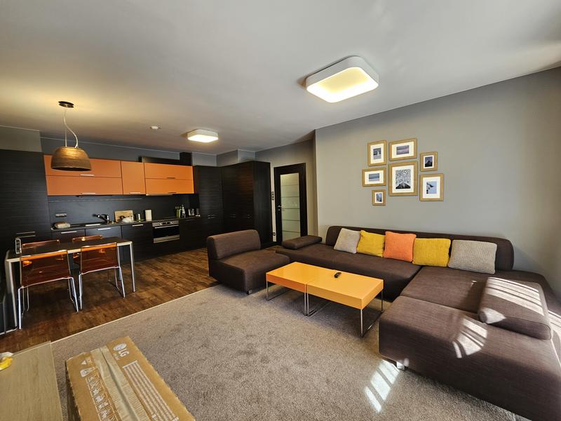 Меблированная панорамная квартира с двумя входами в горном курорте Банско г. Банско , кв. «Грамадето» Трехкомнатная квартира с 2 кухнями, 2 ванными комнатами с туалетами и 2 террасами Предлагаем в аренду ухоженную квартиру с 2 спальнями в популярном районе горнолыжного курорта Банско, среди зелени и отличных возможностей для прогулок, недалеко от гор и гольф-поля. Квартира расположена всего в 1,5 км от гондольного подъемника, обеспечивающего легкий доступ к