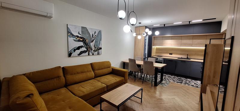 Предлагаем новую, современно меблированную двухкомнатную квартиру, расположенную в элегантном жилом здании, построенном в 2022 году. Недвижимость расположена на 7-м этаже из 10, выходит на южную сторону и имеет площадь 73 кв. м, что обеспечивает большое количество естественного