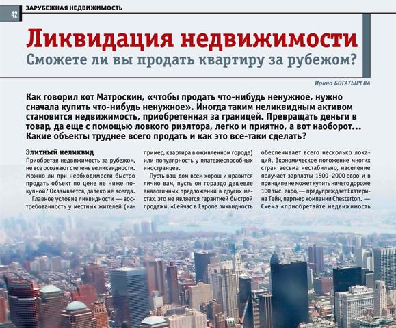 Как говорил кот Матроскин, «чтобы продать что-нибудь ненужное, нужно сначала купить что-нибудь ненужное». Иногда таким неликвидным активом становится недвижимость, приобретенная за границей. Превращать деньги в товар, да еще с помощью ловкого риэлтора, легко и приятно, а вот наоборот... Какие объекты труднее всего продать и как это все-таки сделать?