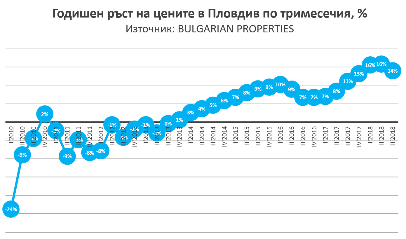 Тенденцията на забавяне на нарастването на цените, която наблюдаваме в София, вече започва да се усеща и в Пловдив, което ни кара да очакваме през следващата година и в Пловдив нарастването на цените да бъде в доста по-умерени граници.