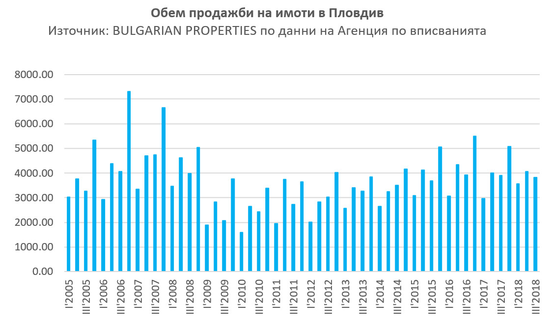 Наблюдава се интензивно строителство с ясно изразена тенденция към повишение на цените. В резултат на покачването на цените купувачите забавиха темпо и преминаха в изчакване. Въпреки това, имотният пазар в Пловдив остава динамичен и търсенето изпреварва предлагането.