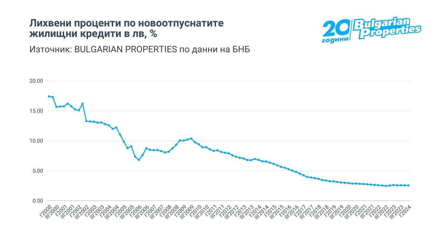 Данните на БНБ сочат, че средният лихвен процент на новоотпуснатите жилищни кредити в лева е 2.54% през февруари, което е съпоставимо с нивата от началото 2023 г., а при евровите кредити дори има спад на лихвения процент и той вече е под 3%. В резултат, продължават да нарастват обемите новоотпуснати кредити. Регистрираният ръст през първите два месеца на тази година е с близо 41% на годишна база.