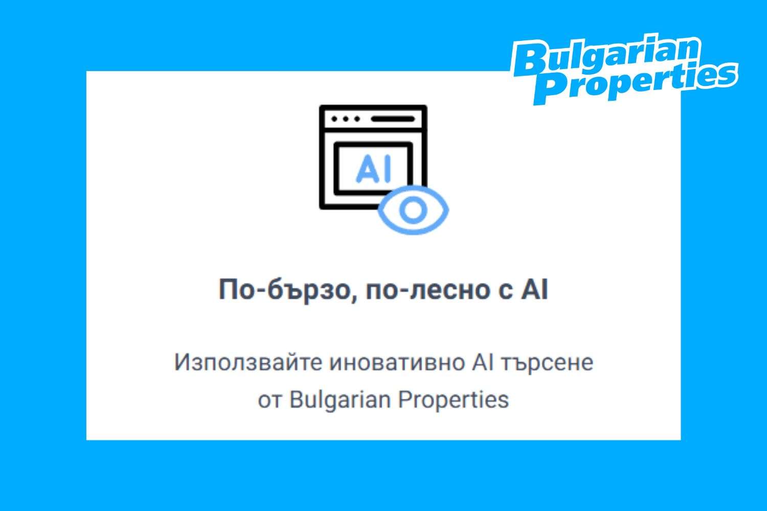 С гордост Ви представяме революционно нов начин да търсите имот онлайн – нашата смарт търсачка с изкуствен интелект, която разбира естествен език.
