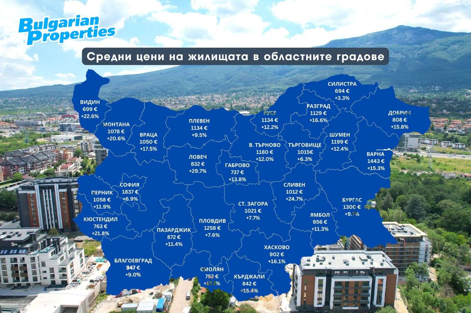 Със средно 14% са поскъпнали жилищата у нас за последните 12 месеца. Това сочат данните на BULGARIAN PROPERTIES, сравнявайки цените в областните градове в края на третото тримесечие на 2024 г. спрямо година по-рано.