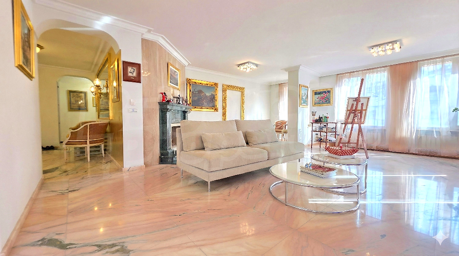 Квартира занимает весь четвёртый этаж дома с лифтом (разрешение на использование от 2001 г.) и объединяет три апартамента в одно большое пространство общей площадью 272,79 кв.м.