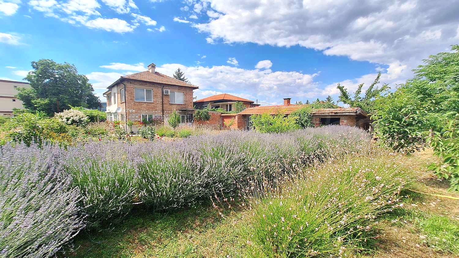 Двухэтажный дом (172 кв. м.) с большим двором (1105 кв. м.) с фруктовыми деревьями и скважиной, гараж (42 кв. м.), теплый переход между домом и гаражом с двумя подсобными помещениями (25 кв. м.) и сельскохозяйственное здание (27 кв. м.). Общая застроенная площадь недвижимости 266 кв. м. Расположена на асфальтированной дороге недалеко от центра живописной деревни Радиново в Горнотракийской низменности, в 5 км к северо-западу от города Пловдив, община Марица.