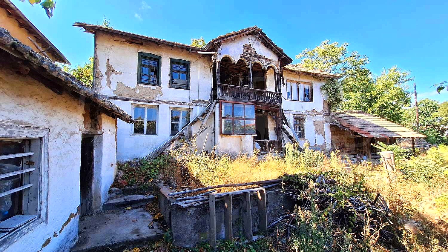 Двухэтажный дом с двором и хозяйственными постройками расположен на асфальтированной дороге в конце красивой деревни в муниципалитете Асеновград, в 35 км от Пловдива.