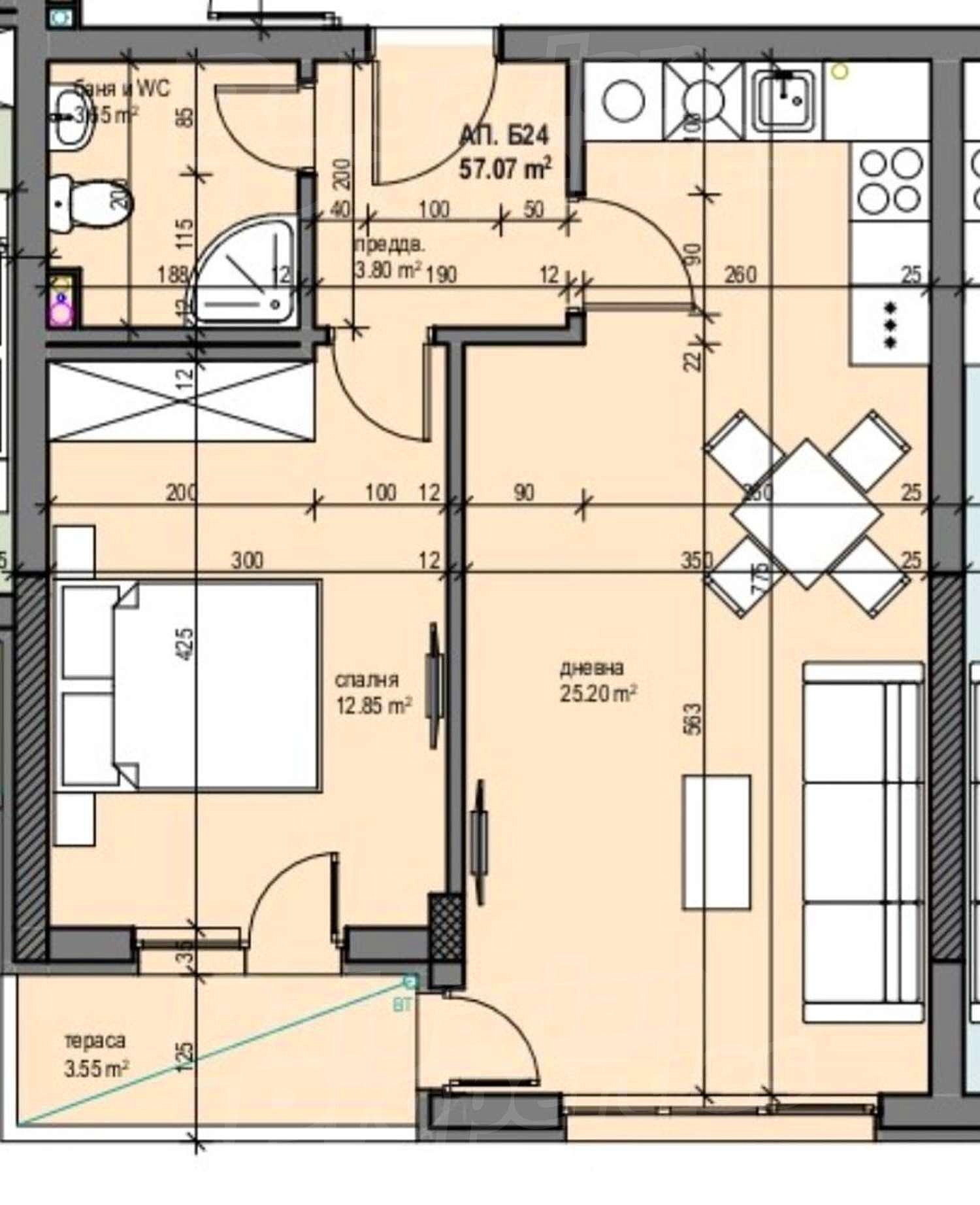 Двухкомнатная квартира с отличным расположением, рядом с торговым центром Billa и Bulgaria Mall