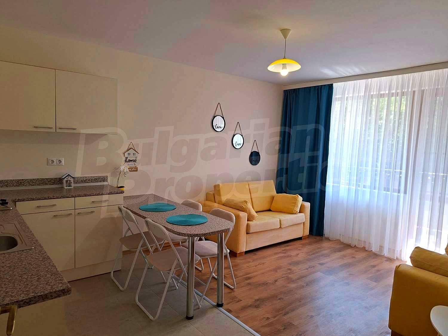 Представляем на продажу новую меблированную двухкомнатную квартиру в закрытом комплексе Kavarna Paradise, расположенном в 5 минутах от пляжа, в тихом и спокойном прибрежном районе Каварны (1,5 км до приморского города). Комплекс ухожен, имеет большой бассейн с шезлонгами и детской зоной, Wi-Fi в зонах общего пользования, а также прокат велосипедов и автомобилей. В 100 метрах от комплекса находится ресторан, где подают блюда болгарской кухни, а в 400 метрах - магазины и другие заведения.