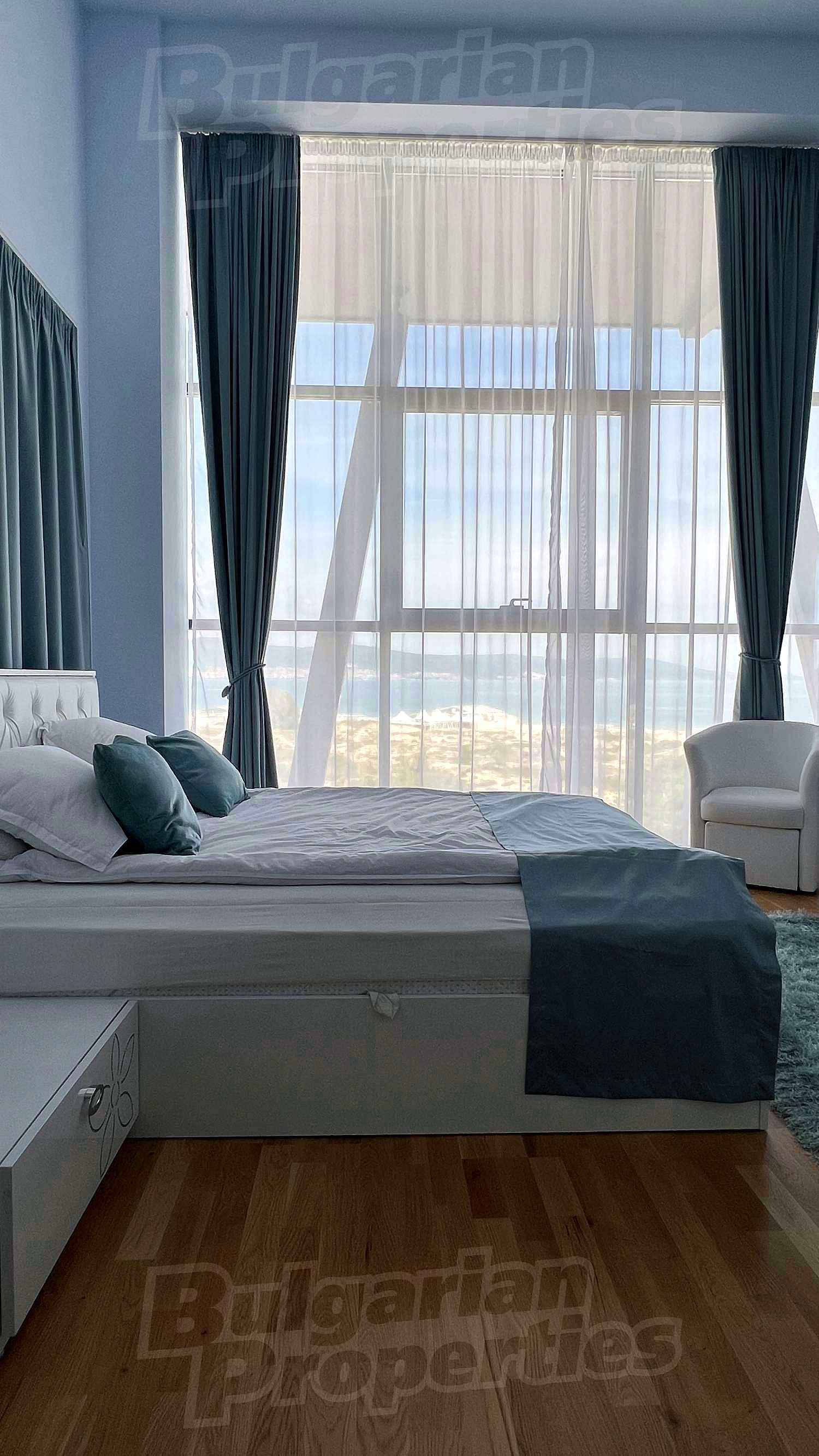 Взгляните на наше новое предложение по покупке полностью меблированной и оборудованной квартиры на 2 уровнях с великолепным видом на море и внутренний двор с бассейном в роскошном комплексе Galeon Residence & Spa, в южной части курорта. Недвижимость расположена на юге Солнечного Берега, на первой линии, всего в нескольких минутах ходьбы от живописного старого города Несебр.