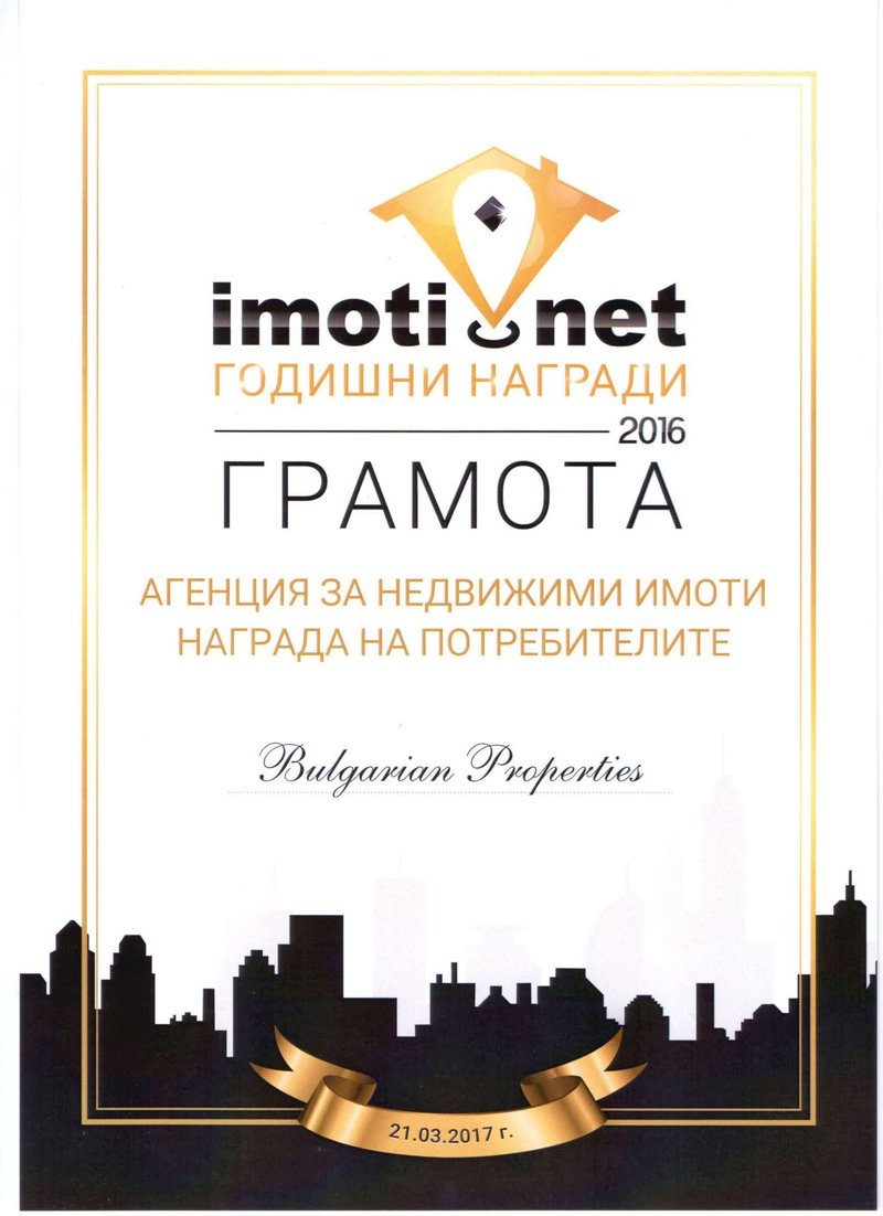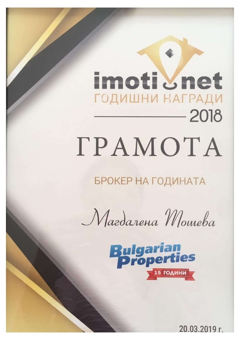 Грамоты и сертификаты BULGARIAN PROPERTIES - агентство 2018 г.