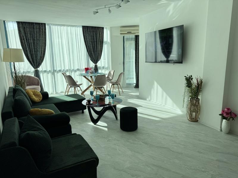 Меблированный двухкомнатный апартамент в центре Солнечный берег к.к. Солнечный берег , «Центр» Апартамент под аренду в ухоженном комплексе с контролируемым доступом Современная и солнечная квартира расположена в центральной части курорта Солнечный берег, в ухоженном комплексе с контролируемым доступом. Квартира расположена на первом этаже и имеет собственную веранду площадью 15 кв. м., которая создает ощущение уюта и является прекрасным