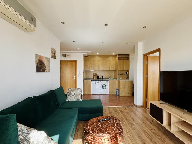 Квартира с двумя спальнями и прекрасной террасой к.к. Солнечный берег Меблированная квартира в комплексе в нескольких минутах ходьбы от пляжа на Солнечном Берегу Готовая к заселению трехкомнатная квартира в закрытом комплексе на Солнечном Берегу, всего в 5 минутах ходьбы от пляжа шириной 60 метров и в 200 метрах от автобусной остановки. Комплекс находится в нескольких минутах ходьбы от всех видов магазинов, ресторанов, кафе и т.д.