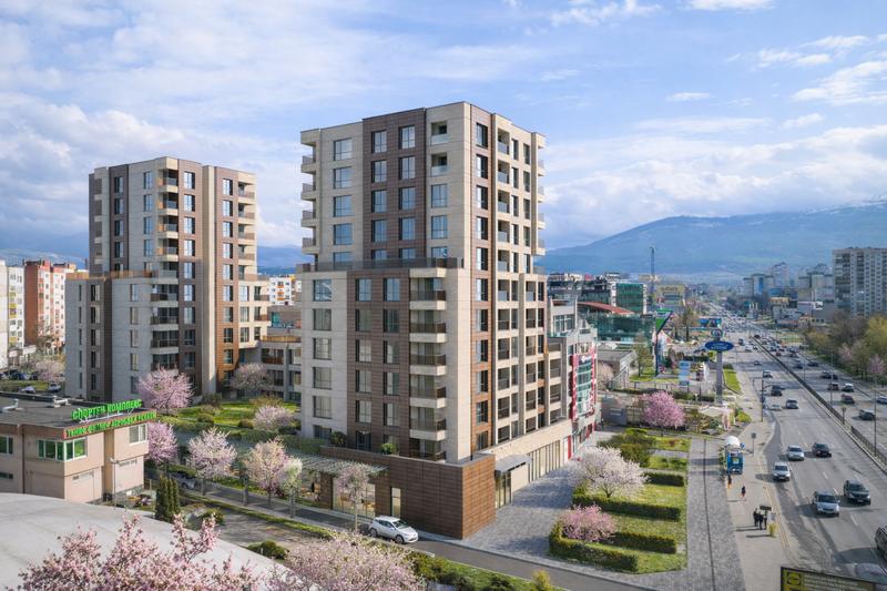 Здание удачно расположено напротив бульвара им. Александра Малинова и рядом со станцией метро, остановками общественного транспорта, супермаркетами, торговым центром, детскими садами и школами. Проект отличается стильным видением,