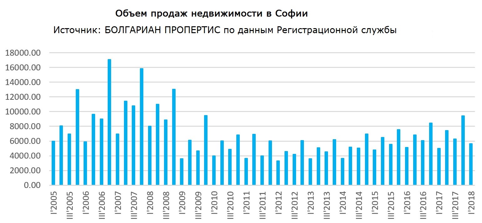 Данные также показывают, что темпы роста продаж недвижимости в Софии ускоряются (примерно с 8% на 2015 и 2016 годы и на 6% на 2017 год).