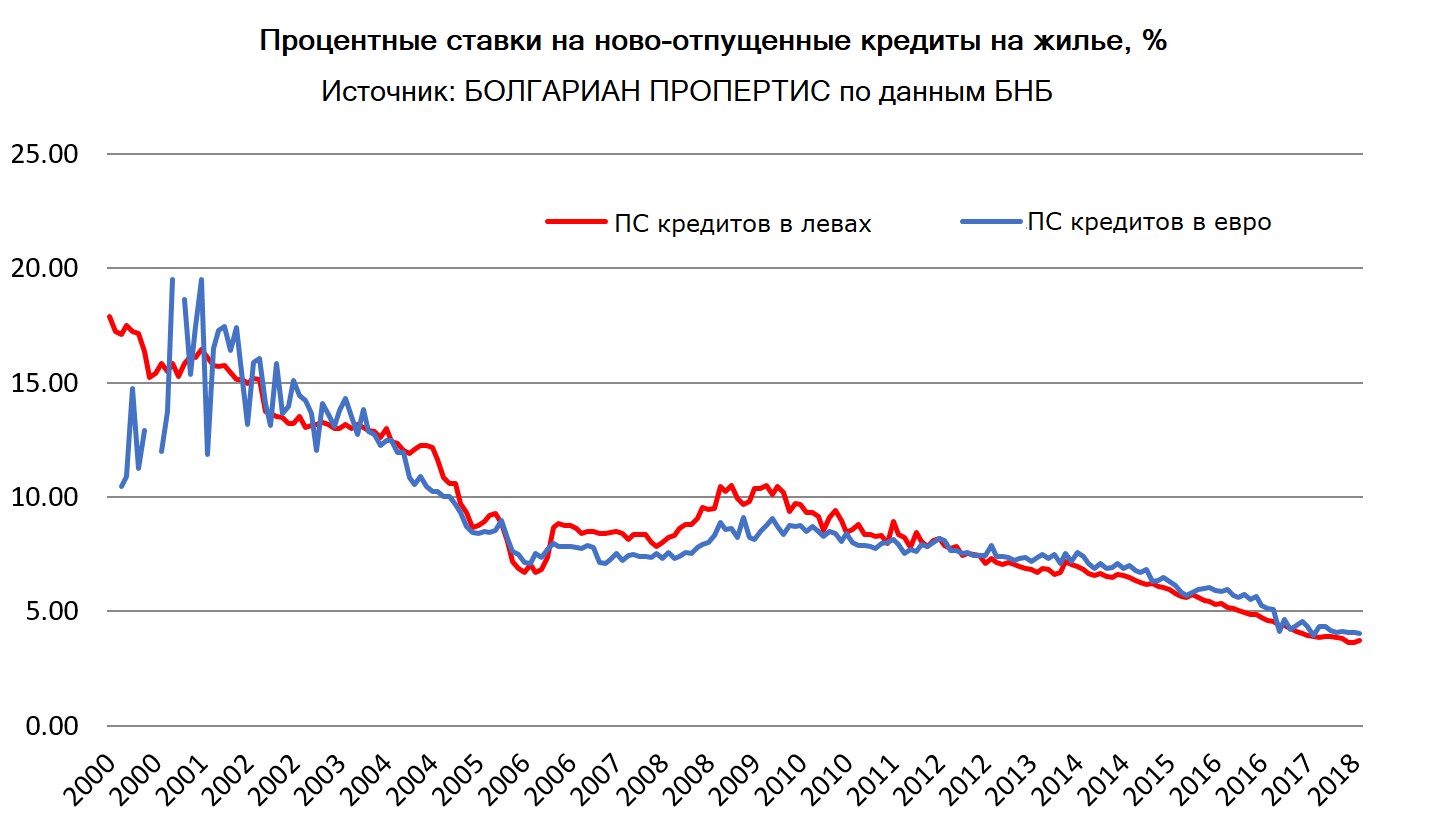 После рекордного 38-процентного роста банковского кредитования на покупку недвижимости в 2017 году, кредитная экспансия банков продолжается и в этом году ростом примерно на 15% в первые месяцы, процентные ставки по кредитам остались на более низких уровнях - от 3.7 до 4%.