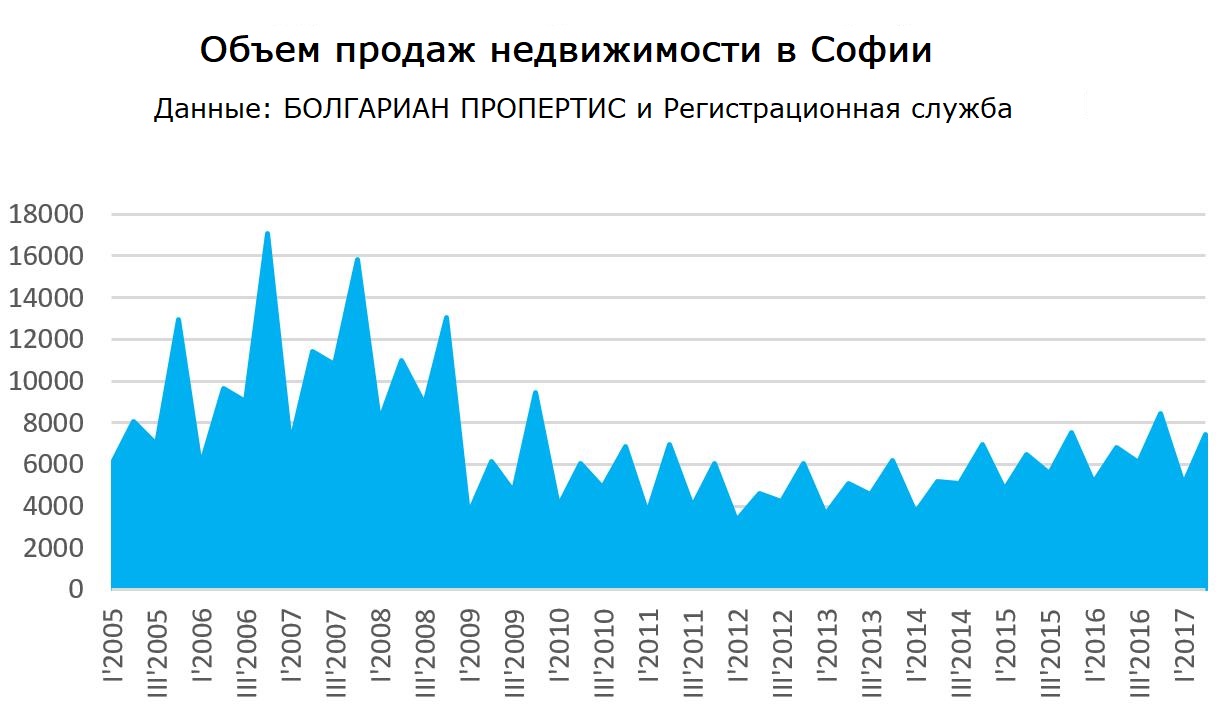 Количество продаж в Софии около 25 000 в год (в годы бума число сделок достигало 45 000 сделок в год), что это предполагает гораздо более сбалансированный рынок в столице.