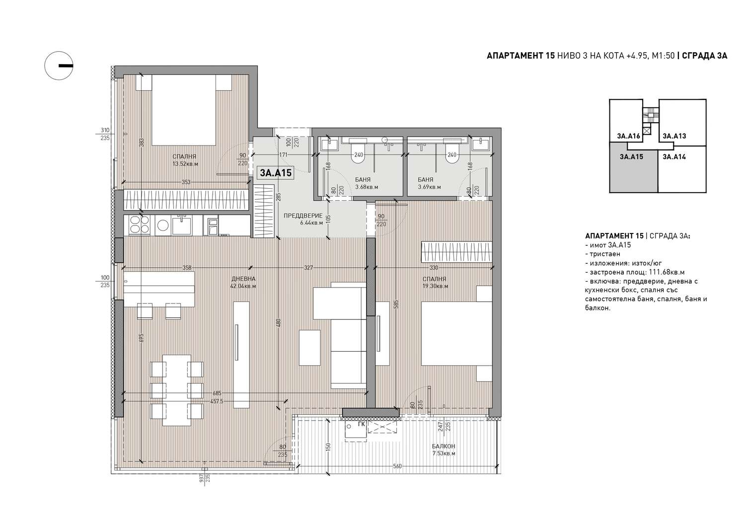 Трехкомнатная квартира в Жилой комплекс класса «бутик» в квартале «Манастирски Ливади-Восток»
