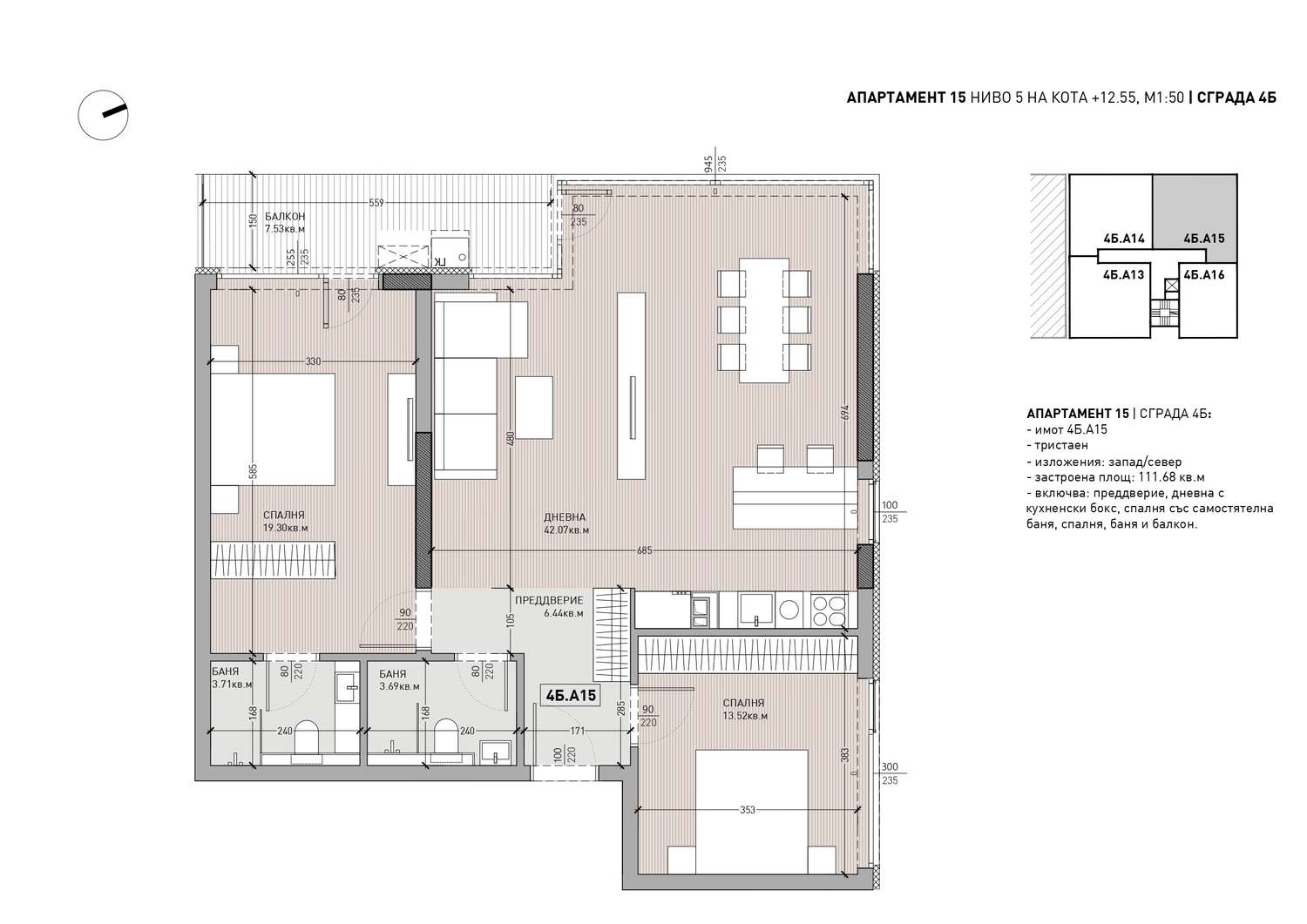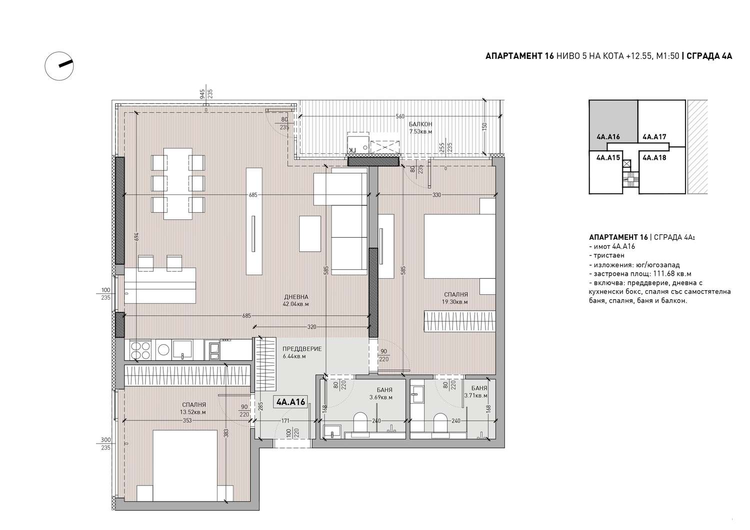 Четырехкомнатная квартира в Жилой комплекс класса «бутик» в квартале «Манастирски Ливади-Восток»