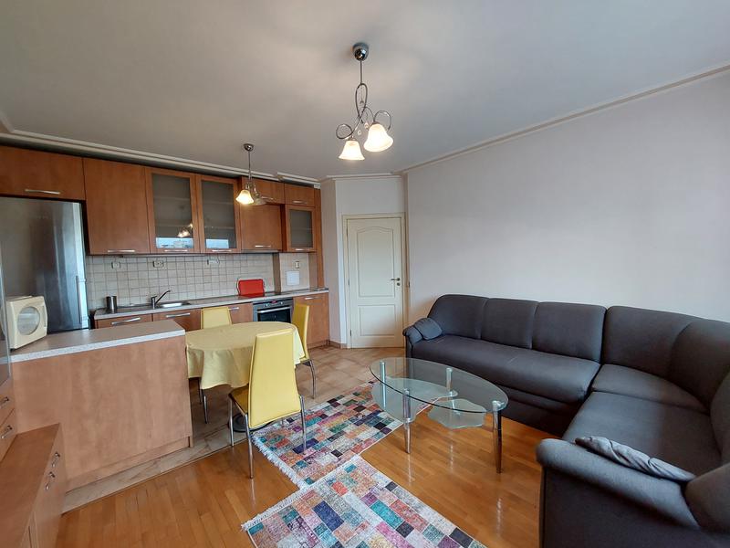 Предлагаем в аренду отлично ухоженную двухкомнатную квартиру площадью 70 кв.м, расположенную в закрытом комплексе в районе Взраждане. Жилье находится на 4-м этаже в современном одиннадцатиэтажном кирпичном здании, построенном в 2020 году, с лифтом и ухоженными общими частями.