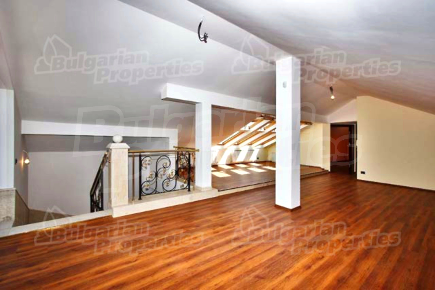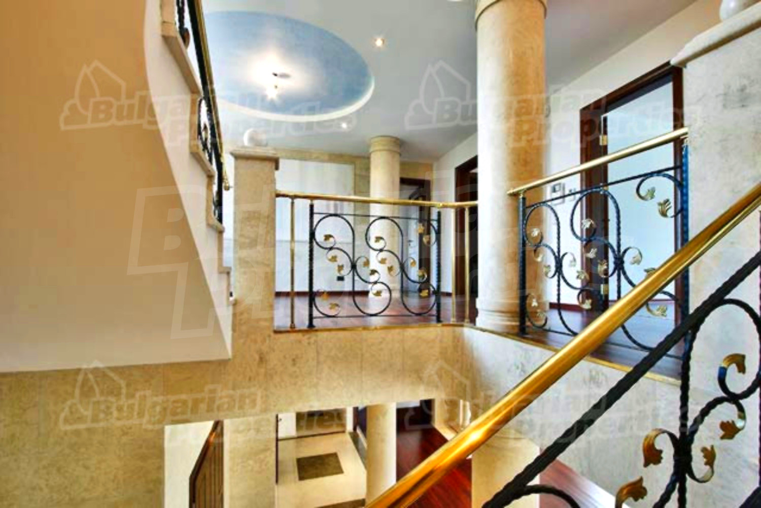 Массивная мраморная лестница с латунными перилами ведет к гостиной с ламинированным паркетом и мраморными колоннами. Есть одна спальня для родителей и большая ванная комната с туалетом „BISAZZA”, а также терраса с изумительным видом на Витошу и на город, которую можно превратить в зимний сад. На этом этаже есть три спальни с двумя ванными комнатами с туалетами, из которых две спальни имеют и террасы.
