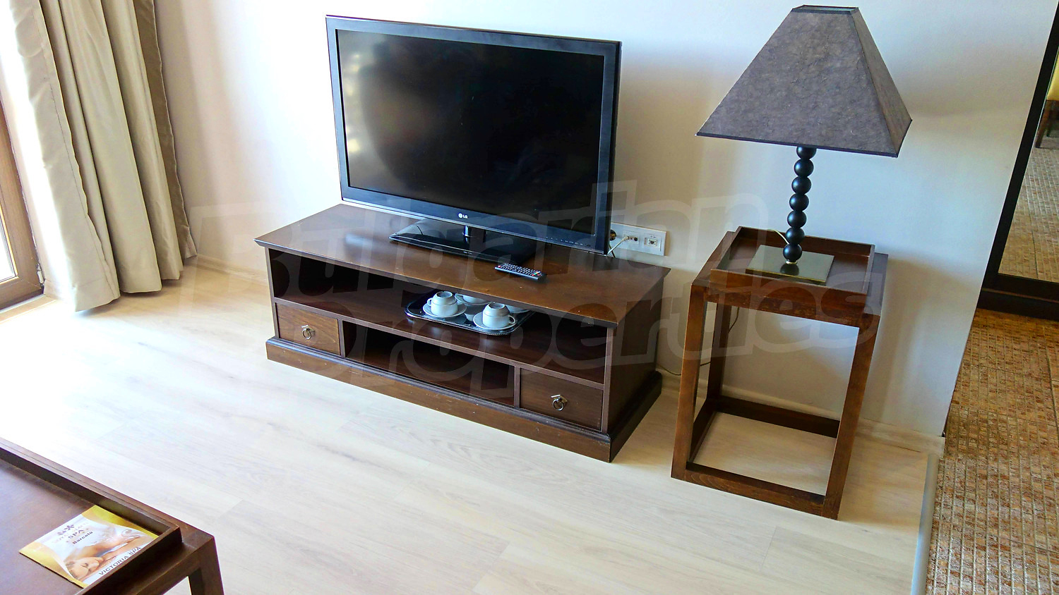 Апартамент площадью 70.07 кв.м. состоит из одной спальни, гостиной с кухней открытого плана с выходом на террасу. Апартамент оснащен системой кондиционирования. Ванная комната полностью облицована плиткой и оборудована сантехникой и бойлером. Квартира находится на четвертом этаже и предлагает прекрасный вид на бассейн. Продается полностью меблированная.