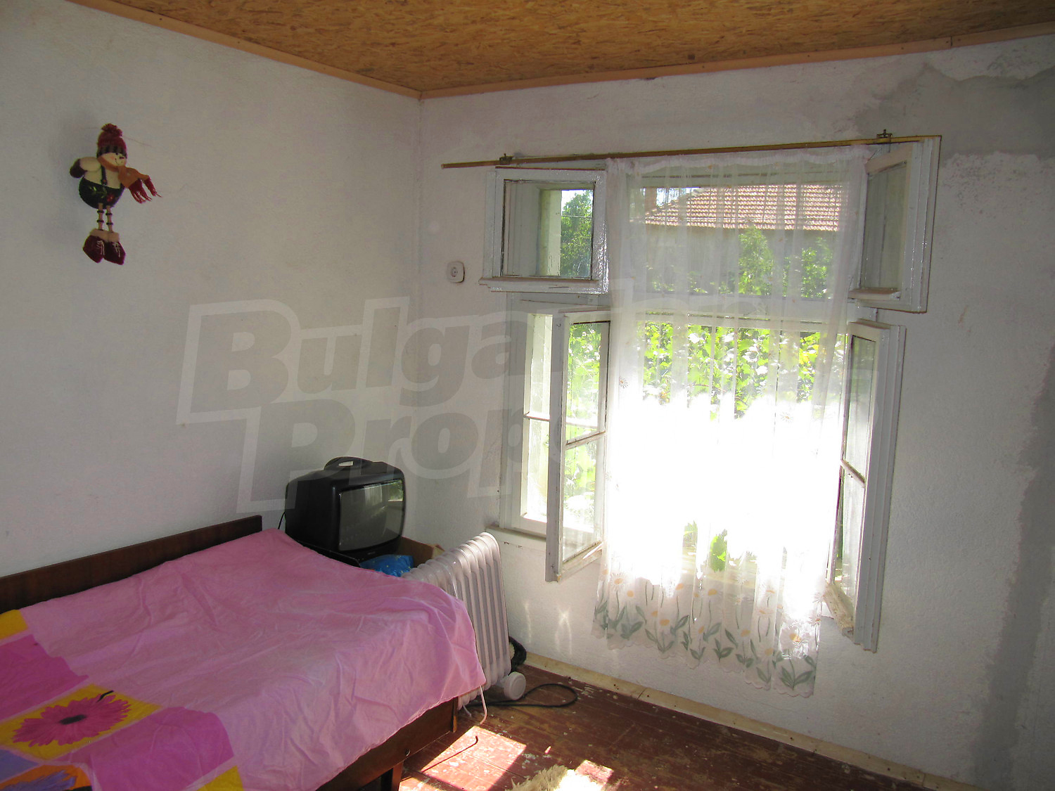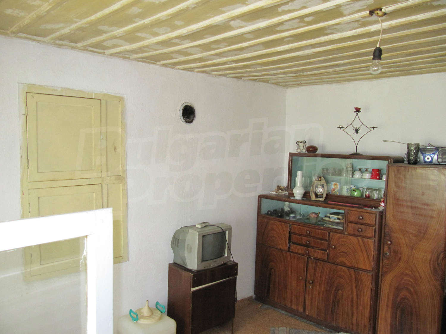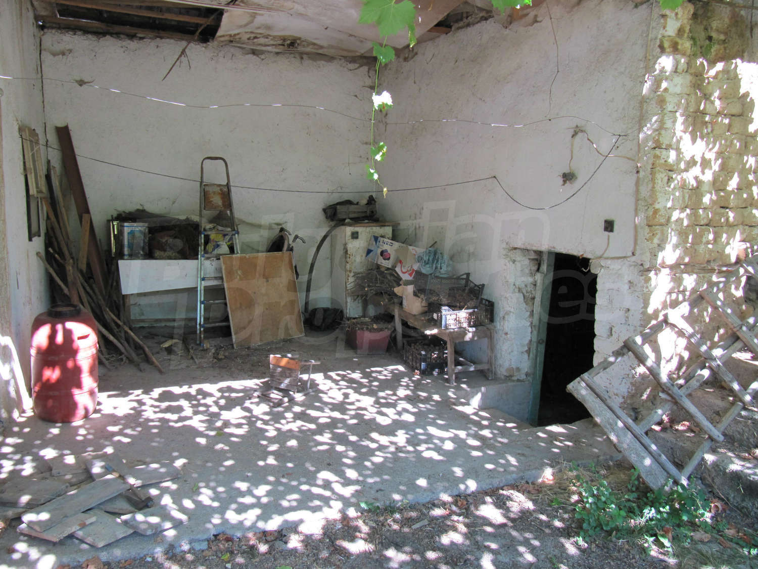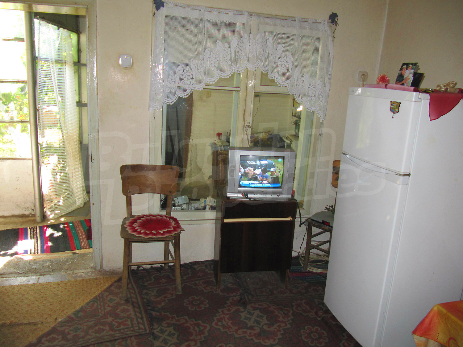 Площадь дома разпределена так: прихожая, три комнаты, ванная комната и кладовая. Полы и оконные рамы деревянные, стены из саманного кирпича. Туалет внешний и находится во дворе, проведено електричество, вода (снаружи и внутри), своя септическая яма. Жилье в целом нуждается в ремонте.