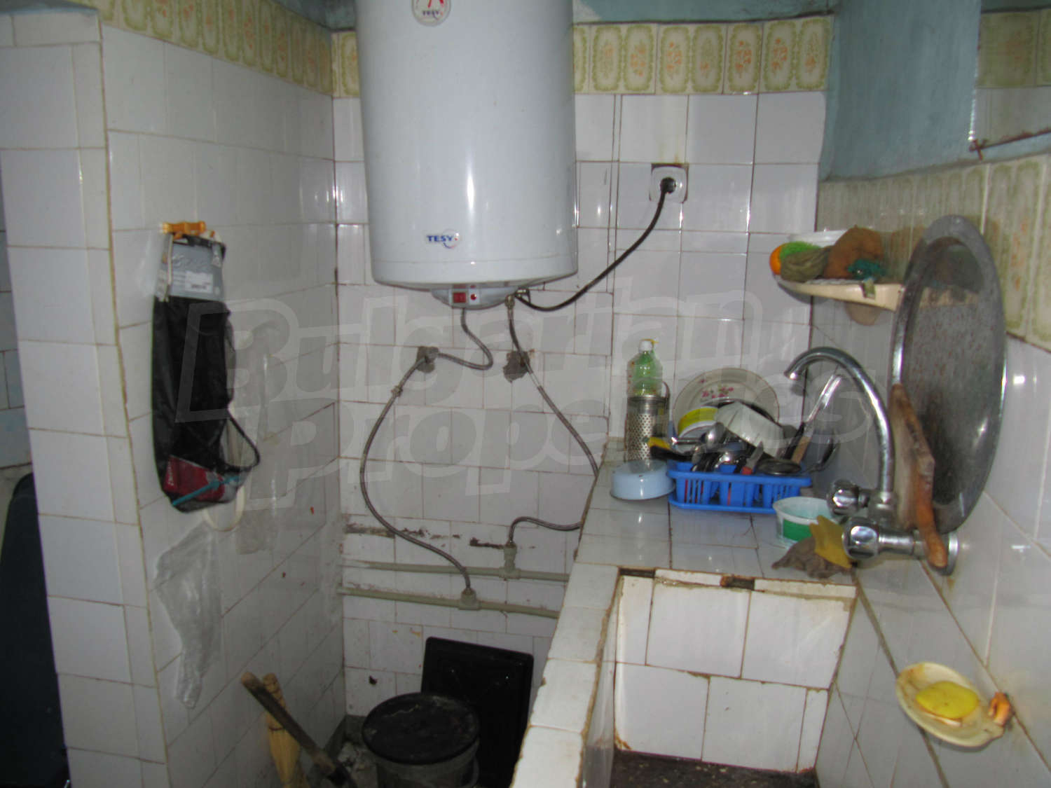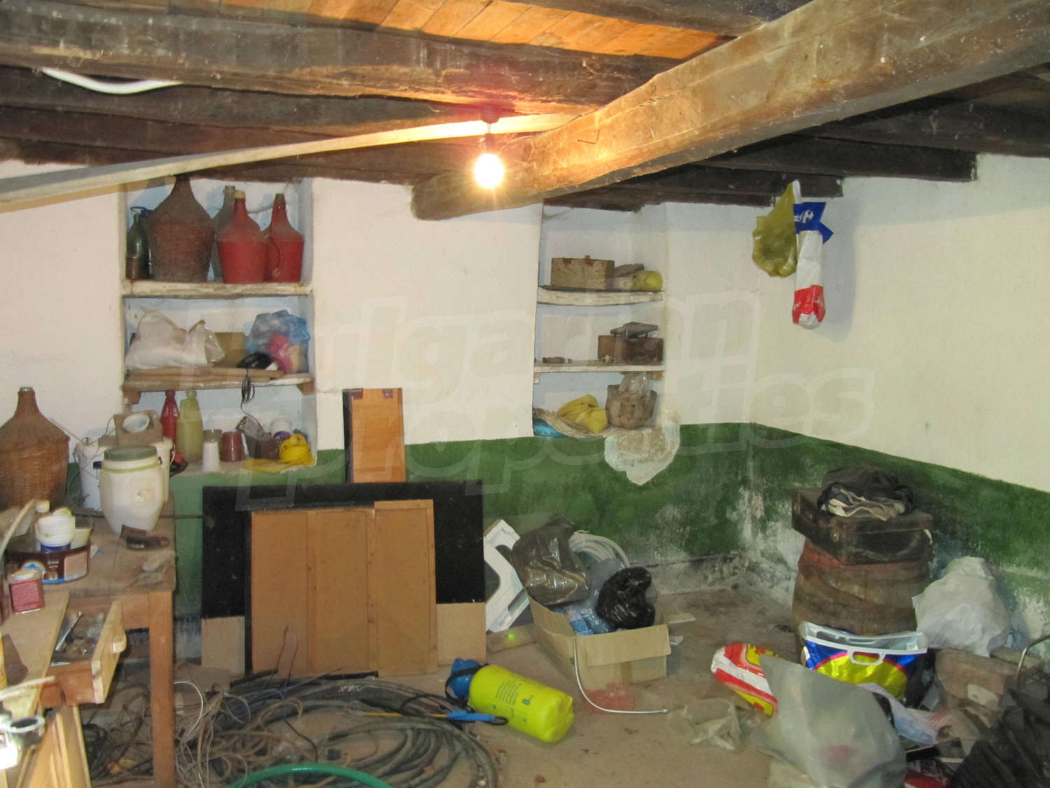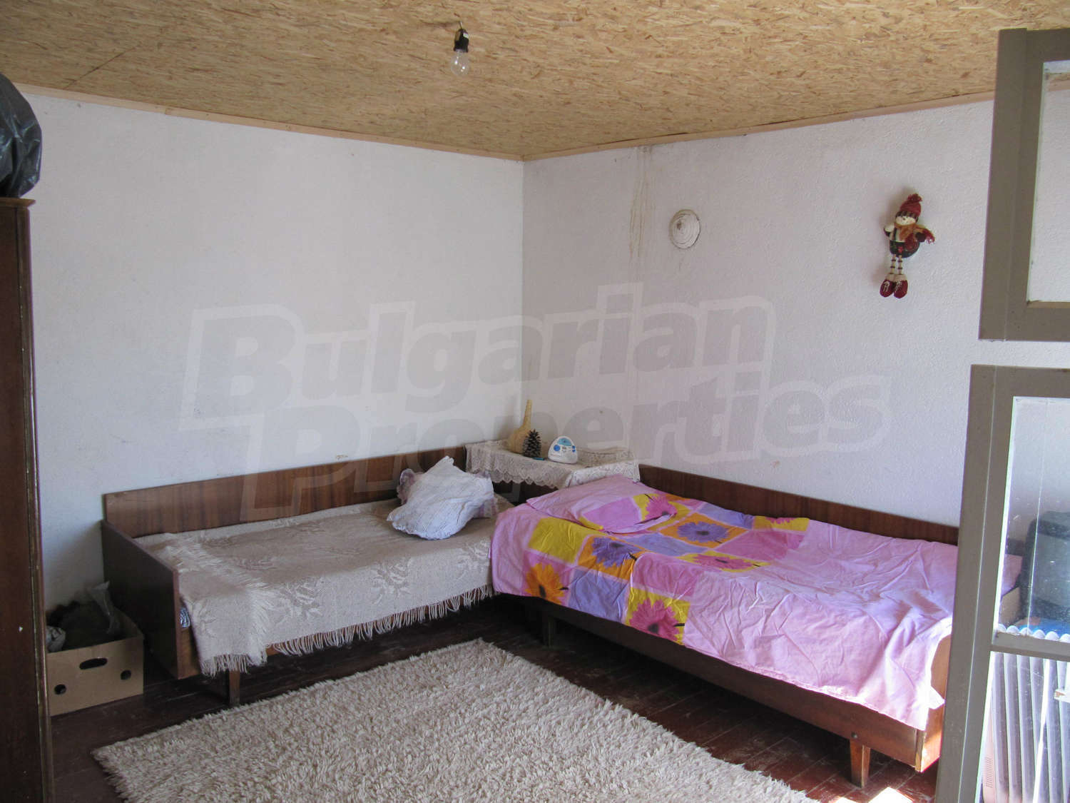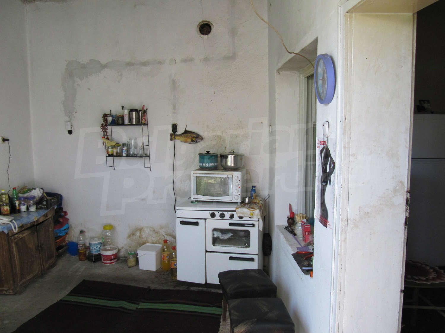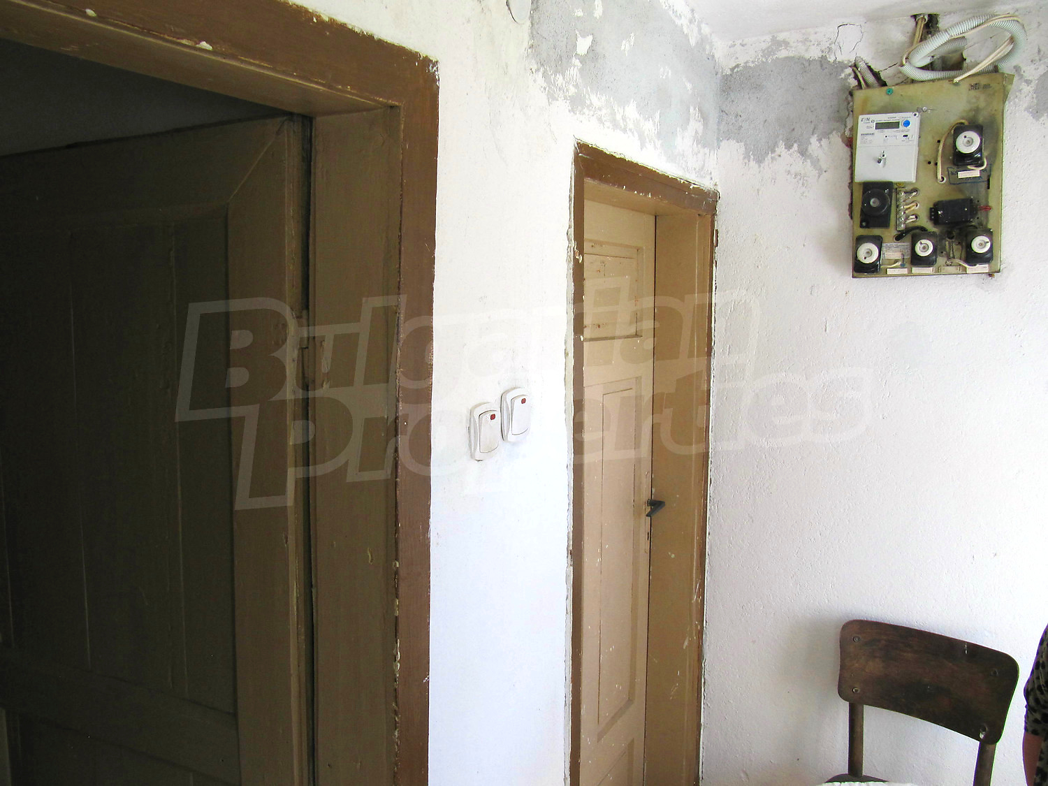 Площадь дома разпределена так: прихожая, три комнаты, ванная комната и кладовая. Полы и оконные рамы деревянные, стены из саманного кирпича. Туалет внешний и находится во дворе, проведено електричество, вода (снаружи и внутри), своя септическая яма. Жилье в целом нуждается в ремонте.