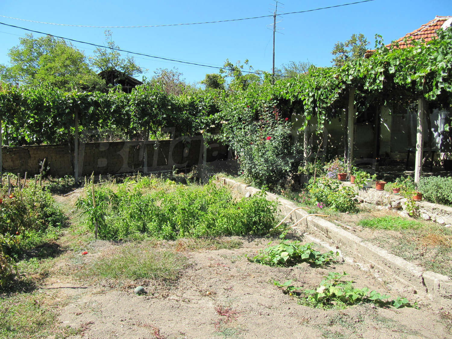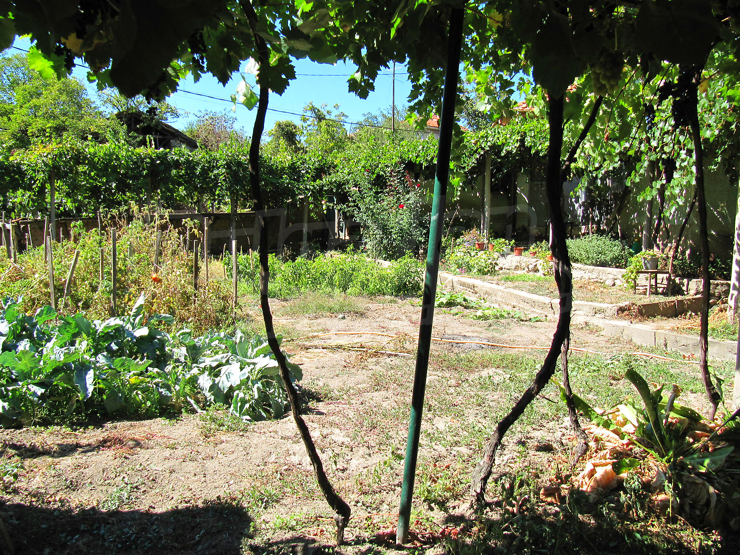 Во дворе растут фруктовые деревья и виноград. Рядом с домом стоит флигель. Место позволяет, по желанию владельца, сделать зону для отдыха на воздухе (барбекю, детскую площадку, цветочные клумбы) или заняться выращиванием овощей.