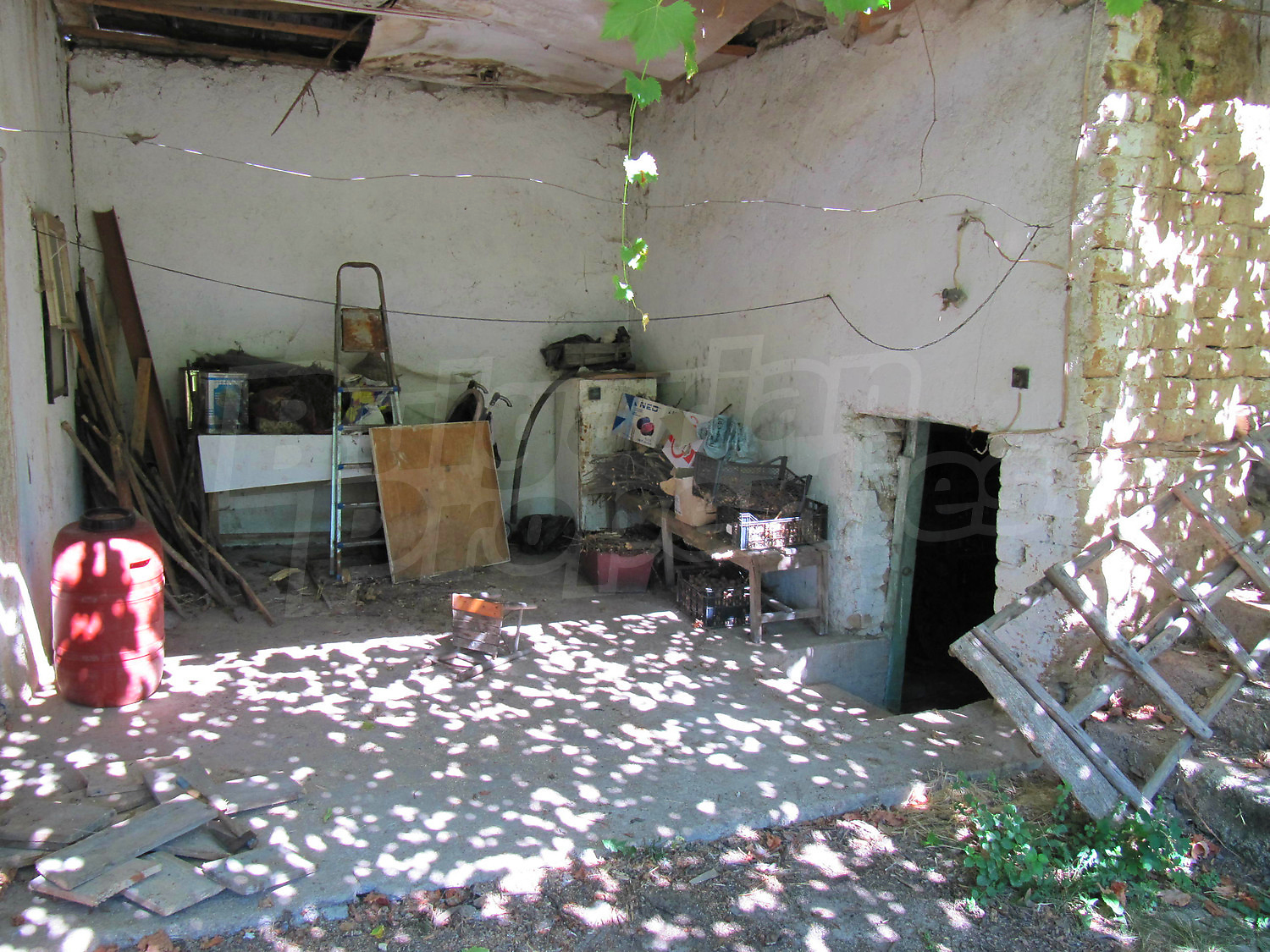 Площадь дома разпределена так: прихожая, три комнаты, ванная комната и кладовая. Полы и оконные рамы деревянные, стены из саманного кирпича. Туалет внешний и находится во дворе, проведено електричество, вода (снаружи и внутри), своя септическая яма. Жилье в целом нуждается в ремонте.