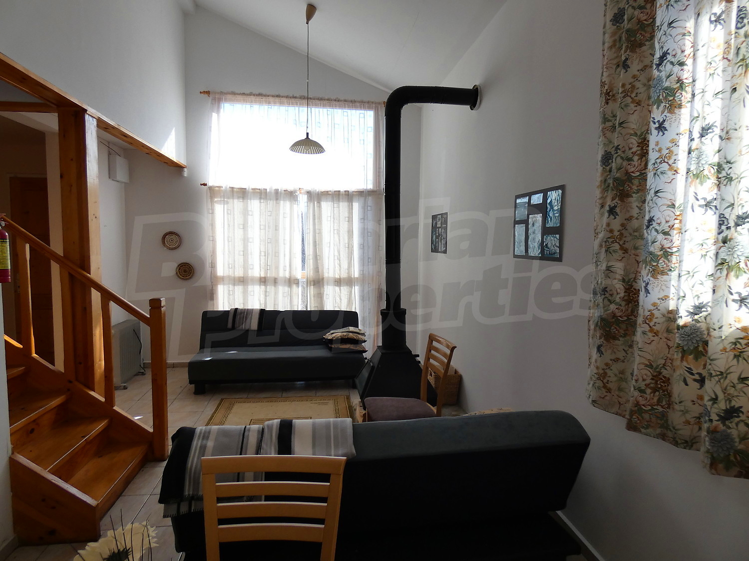 Недавно построенная двухэтажная дача имеет юго-восточное расположение. Площадь виллы – 82.40 кв.м. На первом этаже расположена гостиная, совмещенная с кухней и обеденной зоной, ванная комната с туалетом, прихожая и веранда. На первом этаже на полу – плитка. Деревянная внутренняя лестница ведет ко второму этажу, где расположены две спальни, ванная комната с туалетом и терраса. На полу – высококачественный ламинированный паркет в комнатах и плитка в гостиной и коридоре. Дом продается с мебелью. Кухня полностью оборудованная: керамическая плита, раковина, шкафы, конфорки, духовка, холодильник, стол с шестью стульями. В гостиной есть два дивана и камин. В одной из спален есть двуспальная кровать, две прикроватные тумбочки, стеллажи, а в другой спальне вы найдете две кровати и вешалку. Ванная комната оборудована душевой кабиной, умывальником с зеркалом, туалет, бойлером. Отопление с помощью обогревателя и камина. В доме есть сигнализация. Сад площадью 290 кв.м. с видом на близлежащий лес.